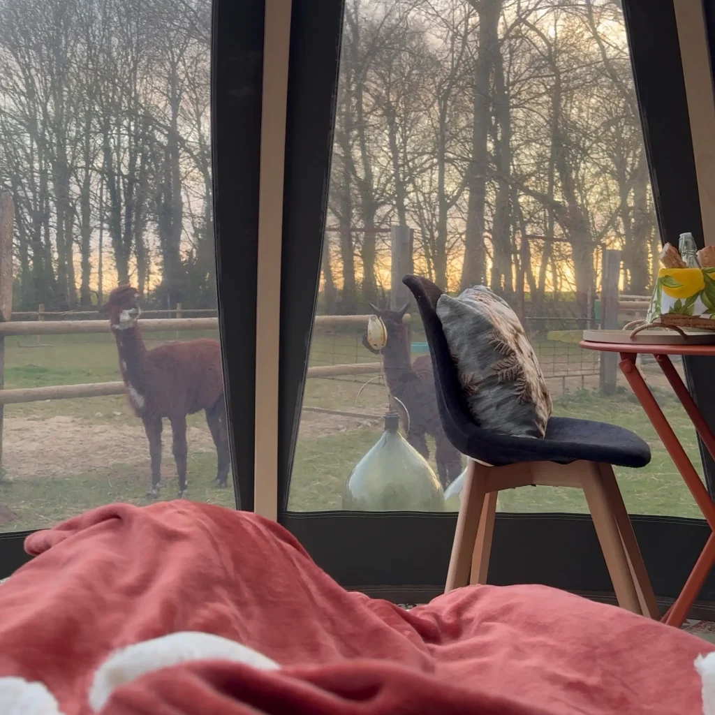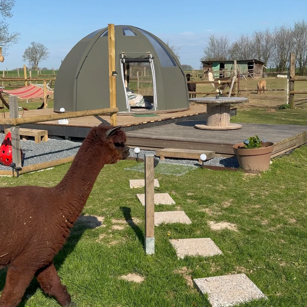 La magie opère encore plus grâce à la présence des alpagas, ces animaux doux, curieux et apaisants, qui évoluent librement autour de votre hébergement. Leur compagnie crée une ambiance unique, idéale pour se reconnecter à la nature et vivre un moment profondément ressourçant.