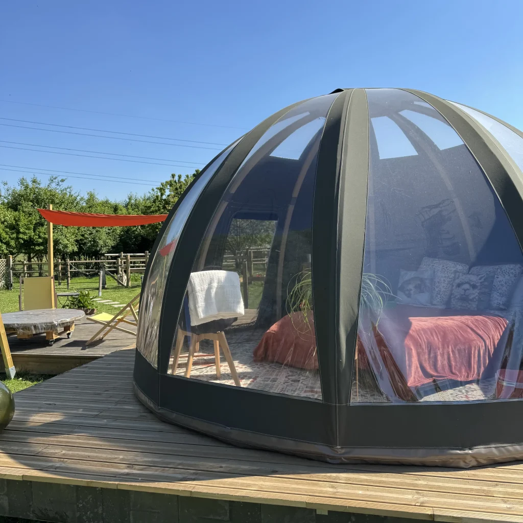Offrez-vous une nuit insolite en Normandie dans un cadre exceptionnel, loin du tumulte du quotidien. Dormir sous une bulle transparente en pleine nature permet de vivre une expérience hors du commun, bercée par le silence de la campagne et la beauté d’un ciel étoilé, sans pollution lumineuse. Chaque instant devient une invitation à la détente, à la contemplation et au lâcher-prise.